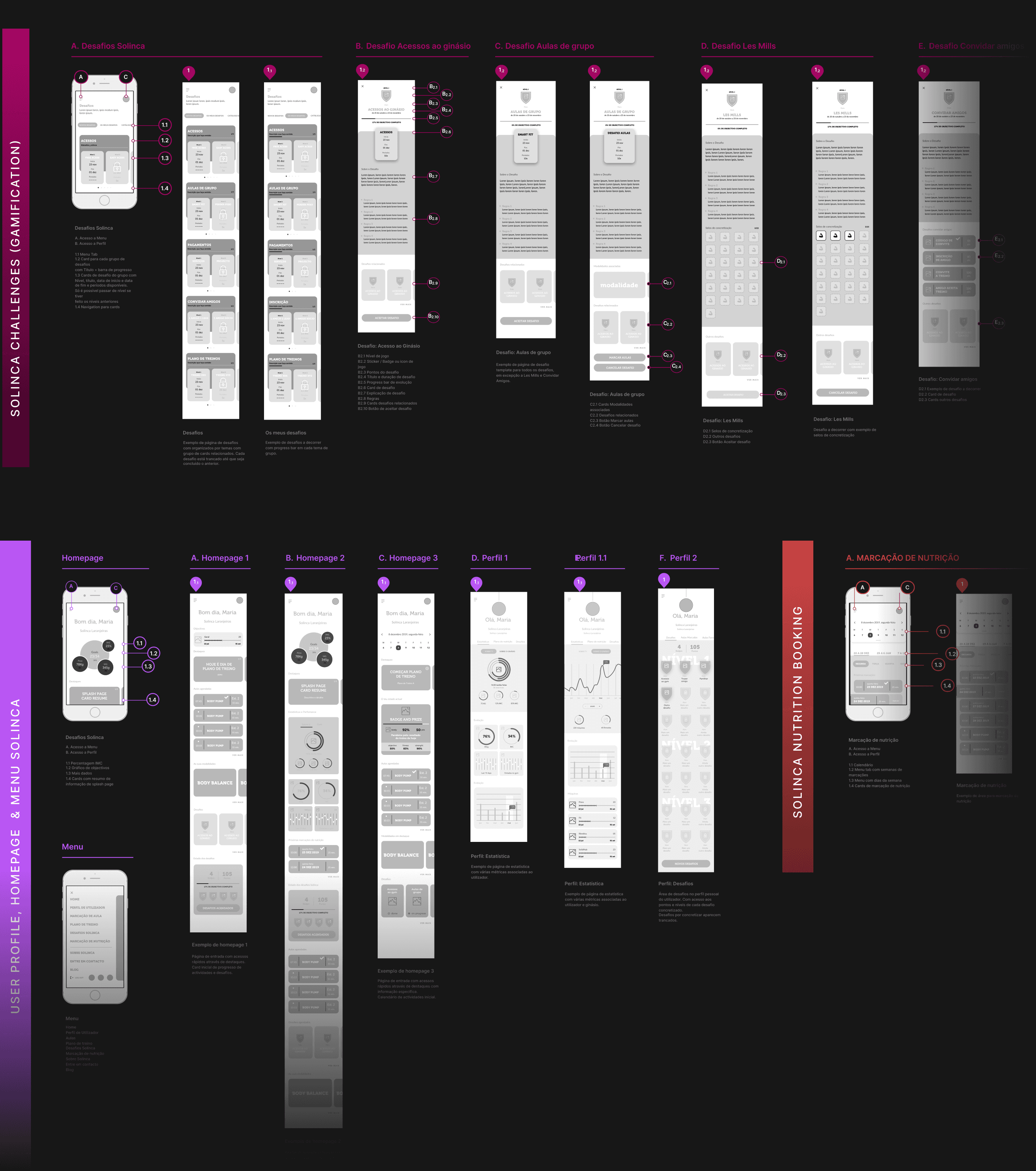 Solinca needed a redesigned mobile experience to unify booking, training, tracking, and member engagement. Using existing research, I led the full Design phase—creating the IA, user flows, wireframes, and UI library. This provided a clear, scalable foundation for their internal team to test and implement.