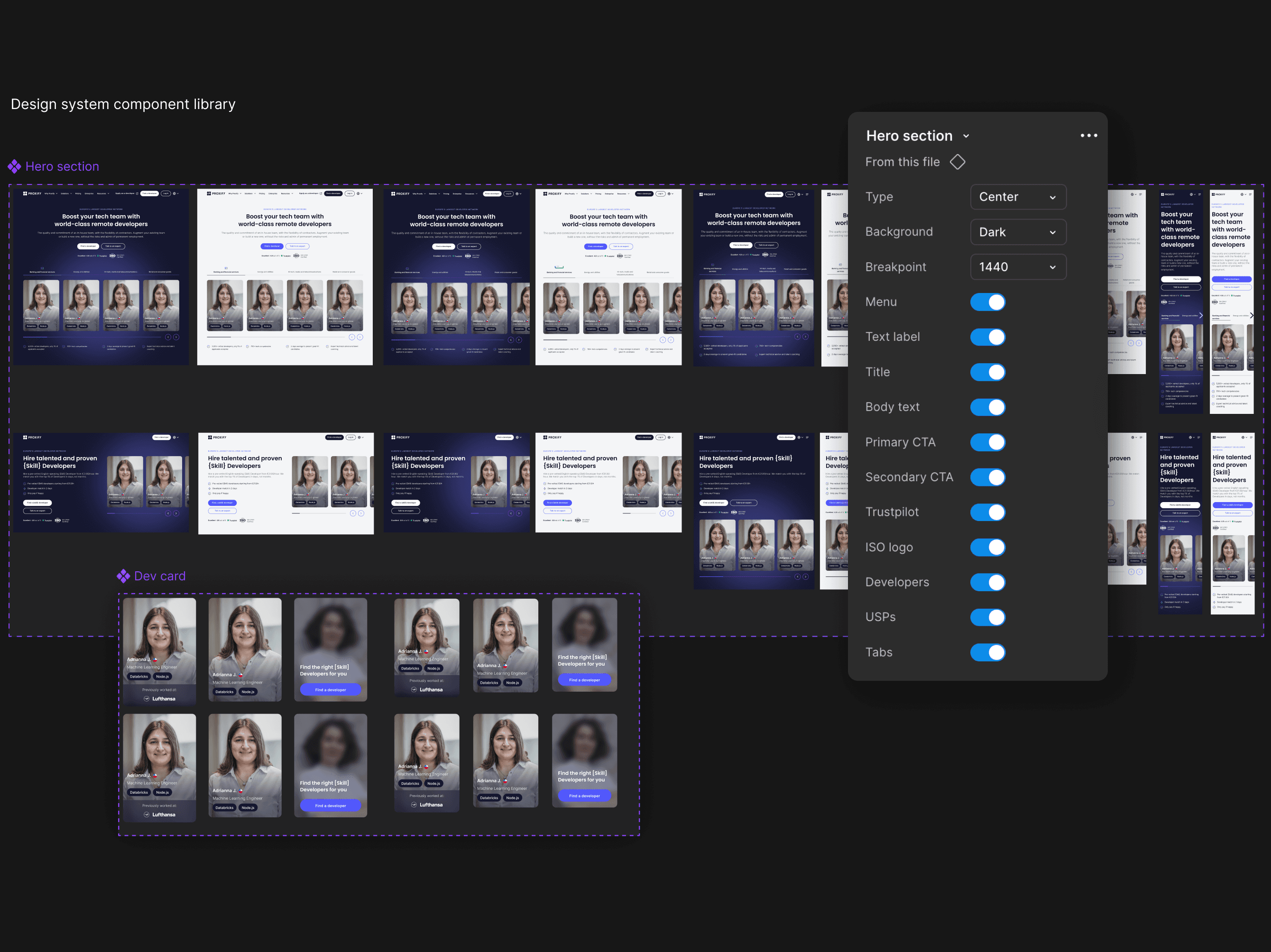 We shifted from a custom, page-by-page setup to a modular system built from reusable components. This transformation enabled faster content creation without developer dependency, greater flexibility for the Marketing team, and consistent design across all pages — creating a single source of truth for components and documentation.