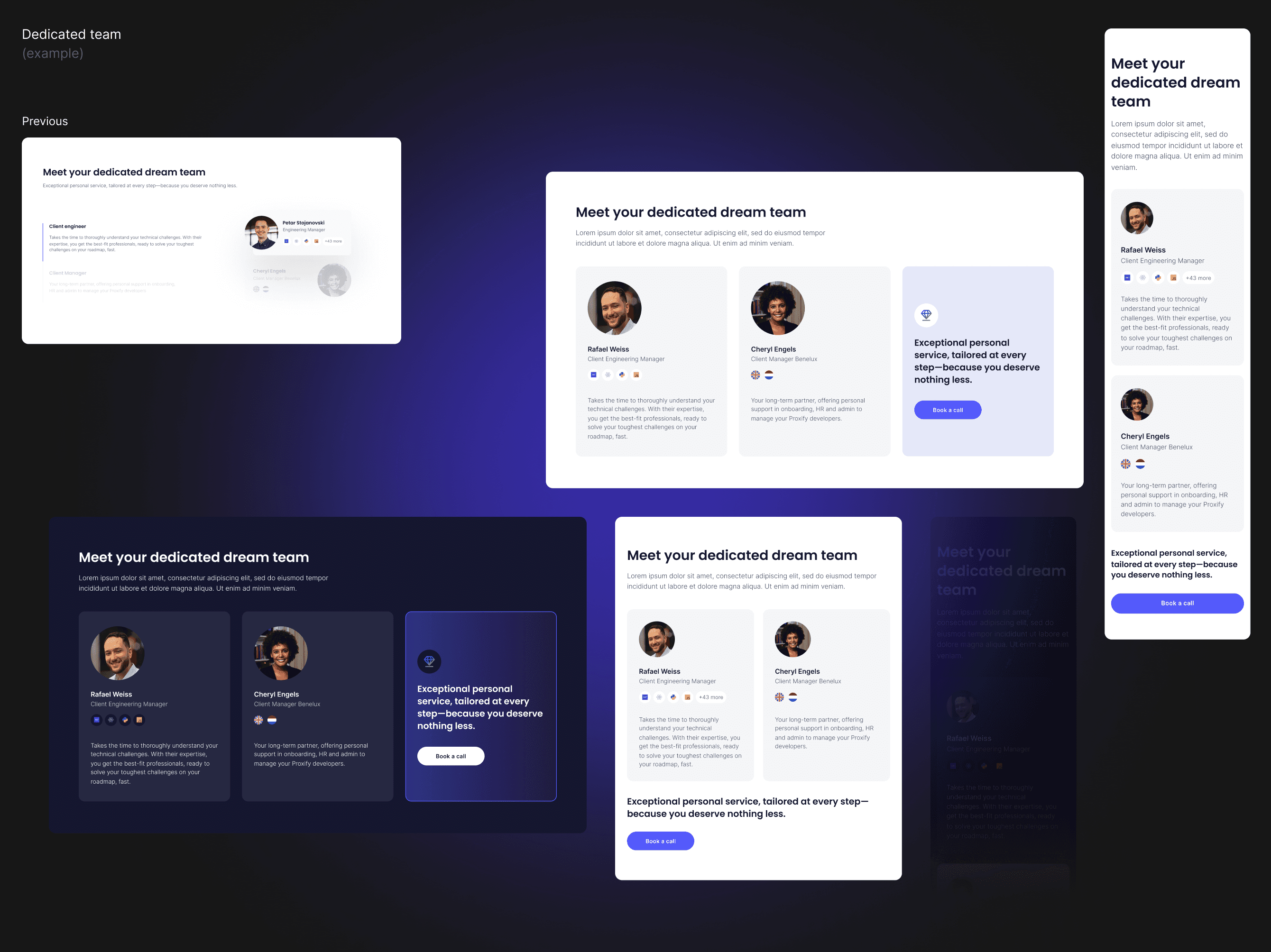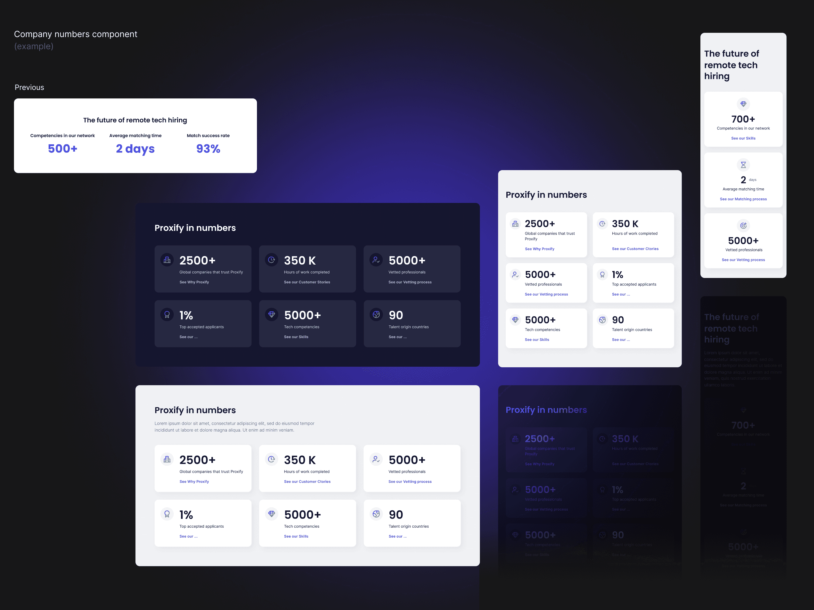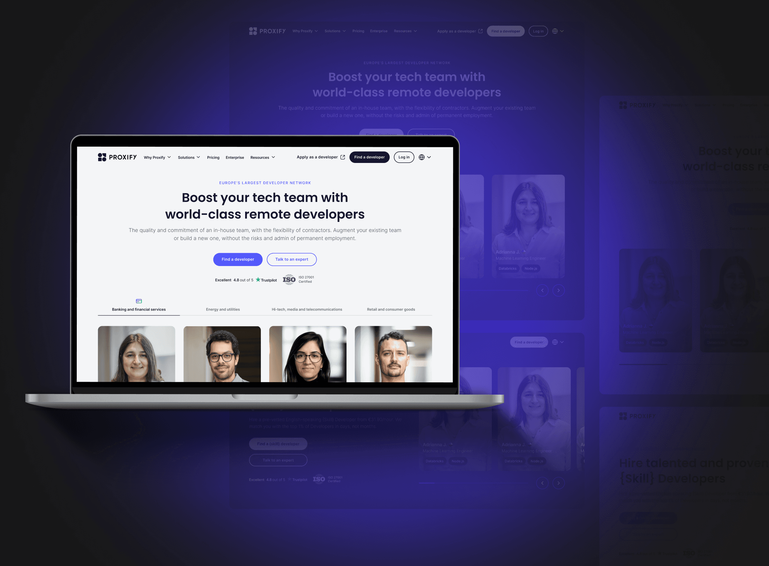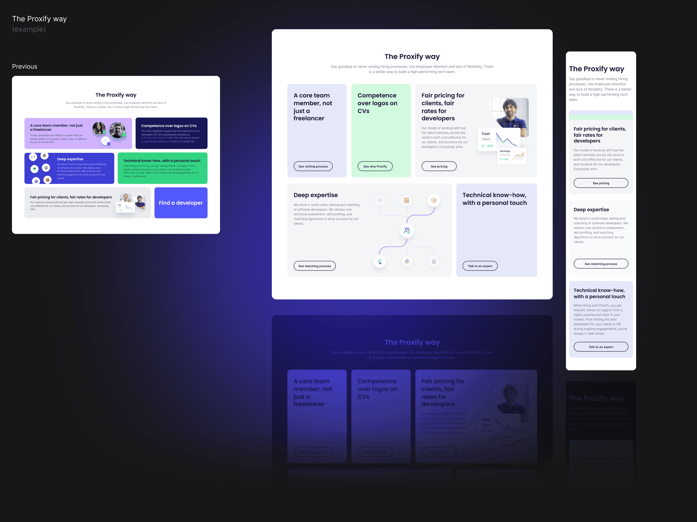 I translated the strategy into a cohesive, flexible visual system that stayed consistent, accessible, and aligned with Proxify’s brand across devices and use cases.