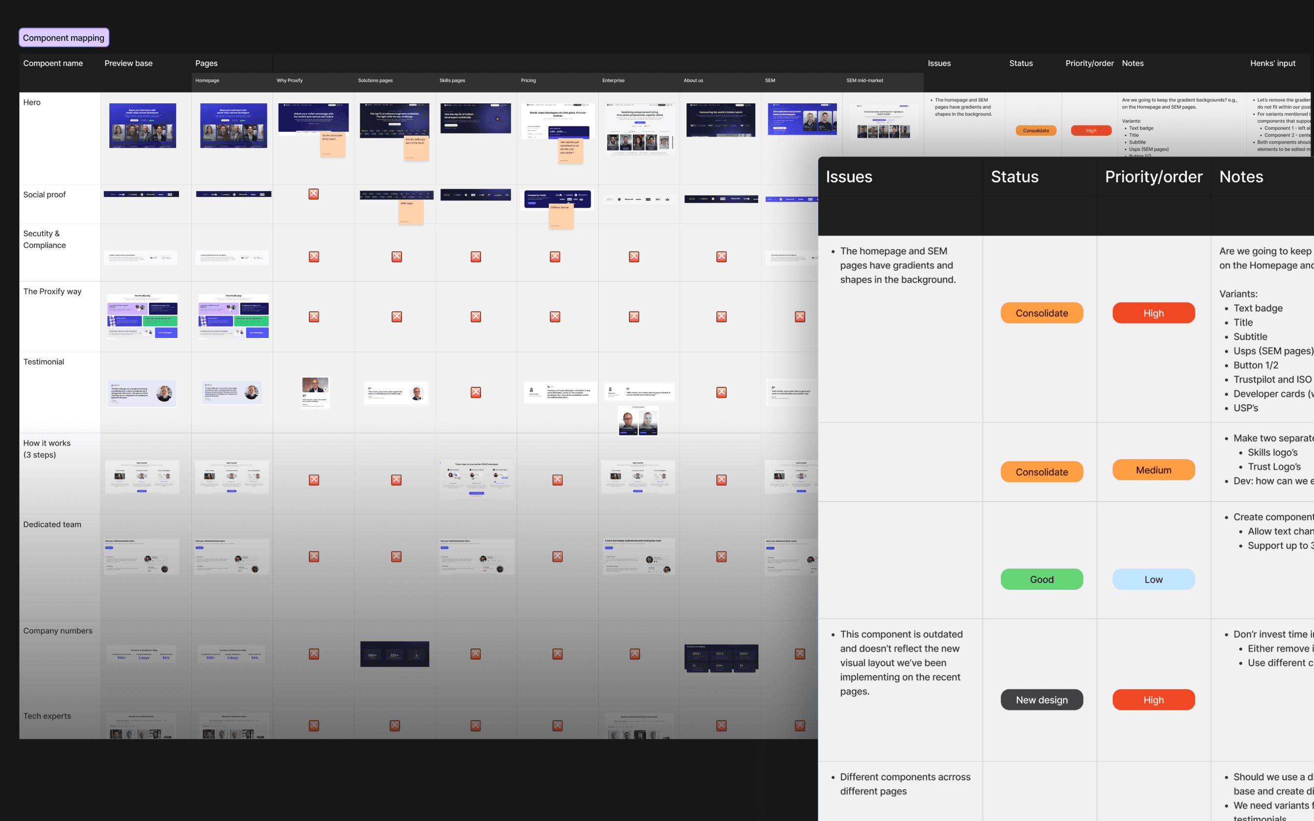 Brand alignment check: Highlighted outdated layouts, typography, or visuals that no longer reflected Proxify’s updated identity.